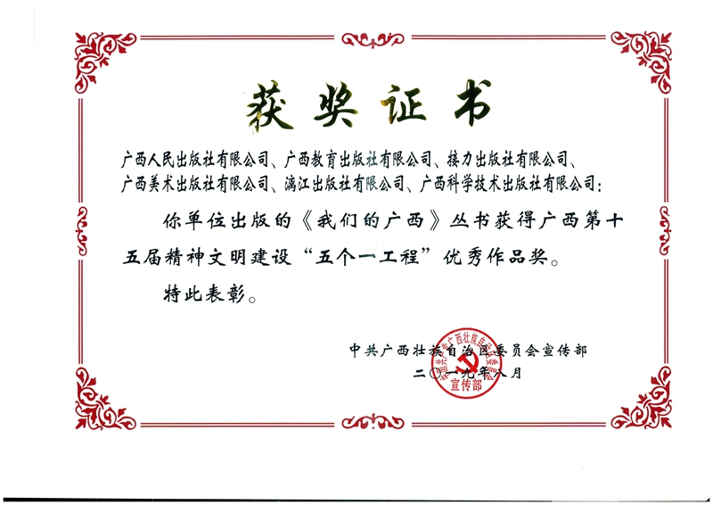 《我们的广西》丛书广西第十五届精神文明建设“五个一”优秀作品奖